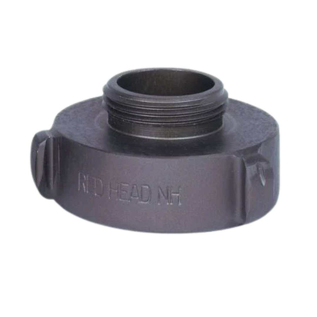 All Red Head aluminium adapters are hardcoat anodized per MIL-A-8625 Type III, Class 1. No dye or coloring is used. This process provides the completed part with a hardened surface that resists corrosion, abrasion, and reduces electrolysis. It also prevents excessive wear on the threads. Complies with NFPA 1963, 4.12 Corrosion Resistance.